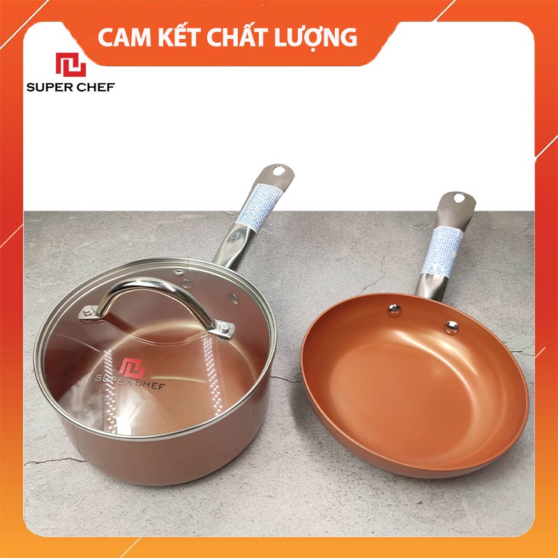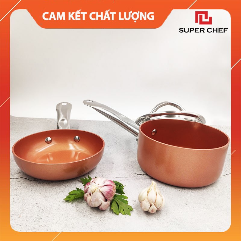 BỘ NỒI CHẢO CHỐNG DÍNH SUPER CHEF sẽ giúp gia đình nhỏ của bạn sẽ có nhưng bữa ăn vừa thơm ngon, vừa đảm bảo an toàn sức khỏe nhờ lớp phủ Ceramic theo công nghệ Nhật Bản và nhiều ưu điểm vượt trội như:🥣 Gồm có 1 chảo chống dính 18 cm và nồi cán dài 18cm, nhỏ gọn tiện lợi, có thể nấu được nhiều món ăn.