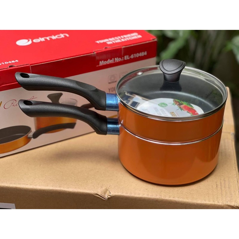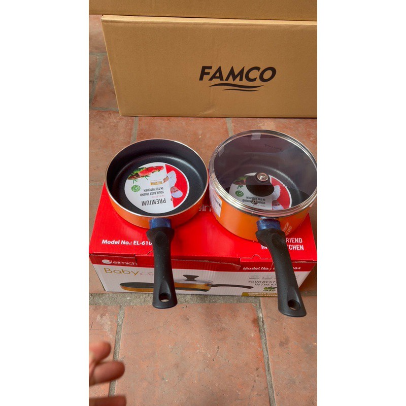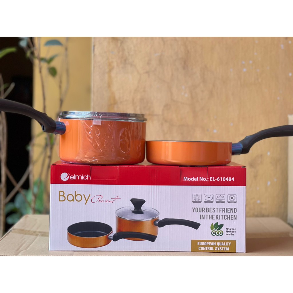 Bộ Nồi Chảo Chống Dính Elmich Baby EL-610484 (MGV.27089)✔ Làm bằng hợp kim nhôm nguyên chất, bên trong phủ 2 lớp chống dính cao cấp an toàn và siêu bền, không giải phóng chất PFOA gây ung thư, chịu nhiệt lên đến 250 độ C