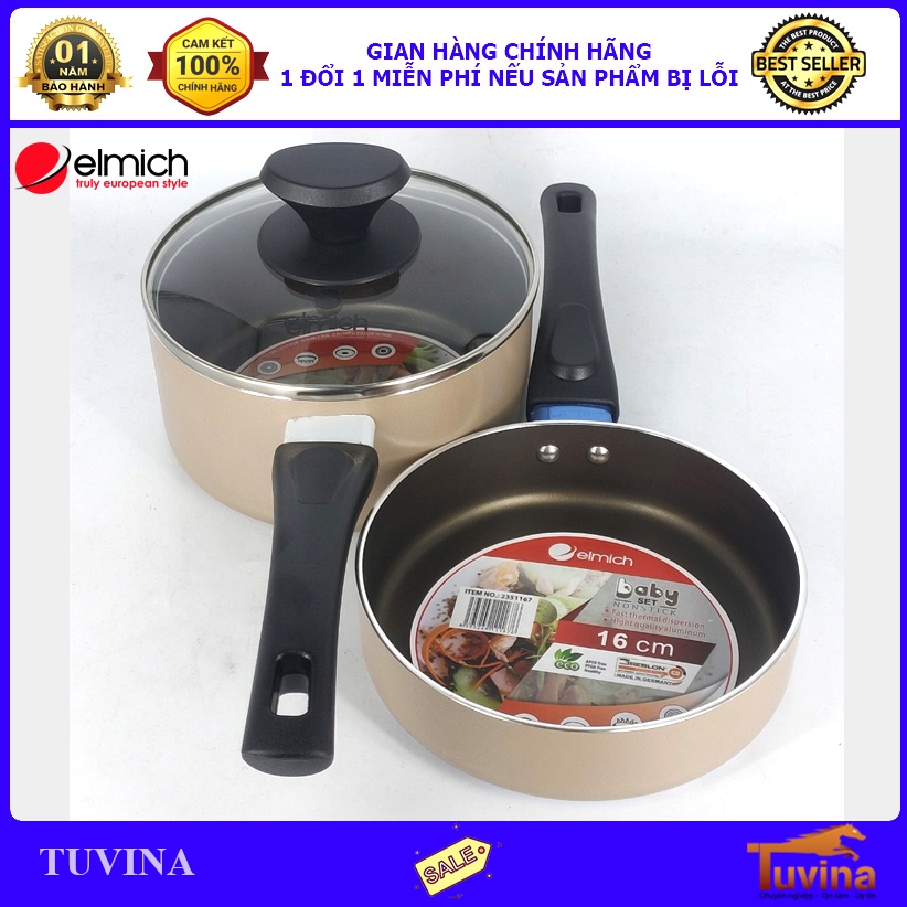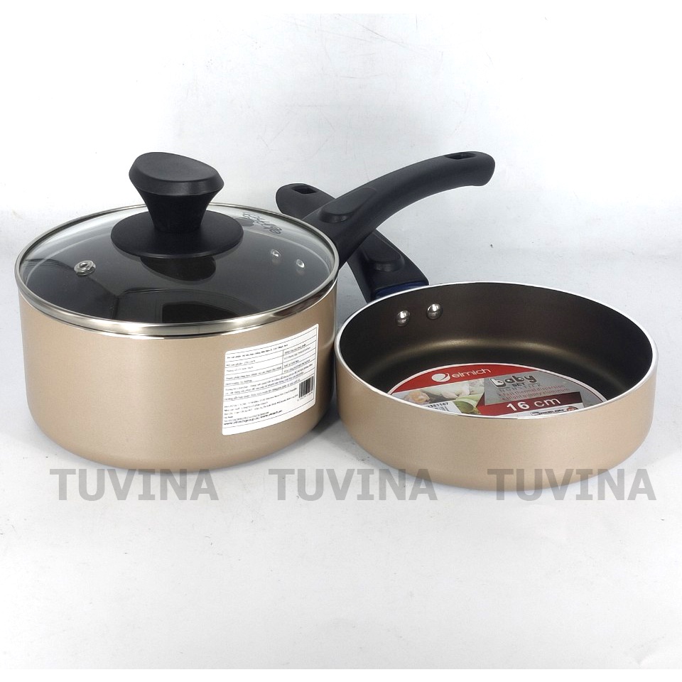 - Bộ nồi chảo Elmich gồm 1 quánh đường kính 16cm và 1 chảo đường kính 16cm.