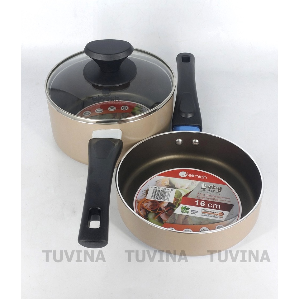 Giới thiệu Bộ Nồi Chảo Chống Dính Elmich Đáy Từ Size 16cm (Dùng Được Cho Bếp Từ) - Hàng Chính Hãng Elmich