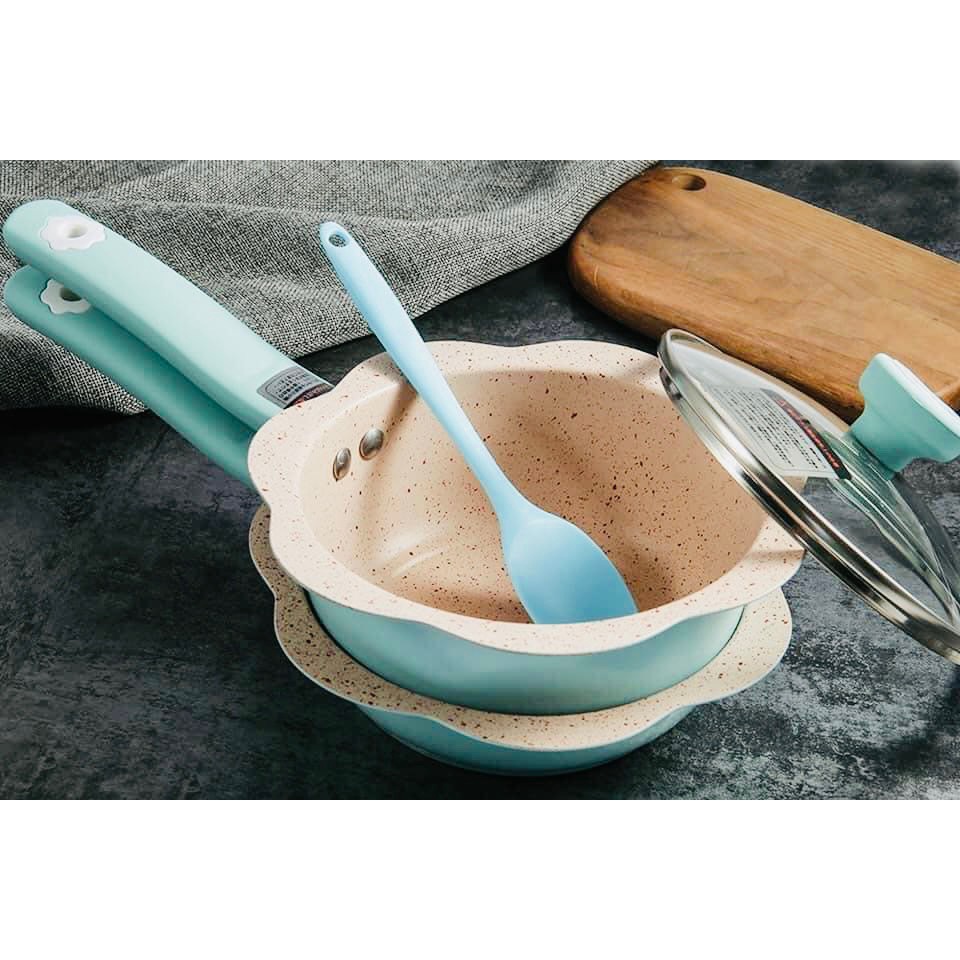 🌸 ☘Bộ nồi chảo chống dính Nhật Bản Tetsu Plus 16cm xinh xỉu luôn ạ. Yêu ngay từ cái nhìn đầu tiên🌸☘️✅ Chất liệu phủ gốm chống dính tốt, đáy inox đúc nên rất nhạy bén với cả bếp từ.