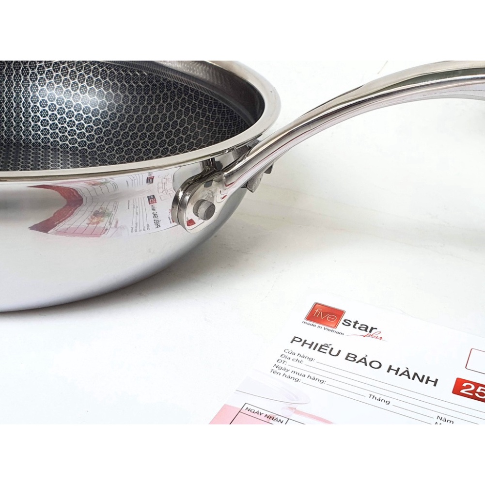 Bộ nồi chảo chống dính sâu lòng tổ ong 3 lớp đáy liền inox 304 Fivestar Plus quai oval nắp kính , tặng 1 sạn inox