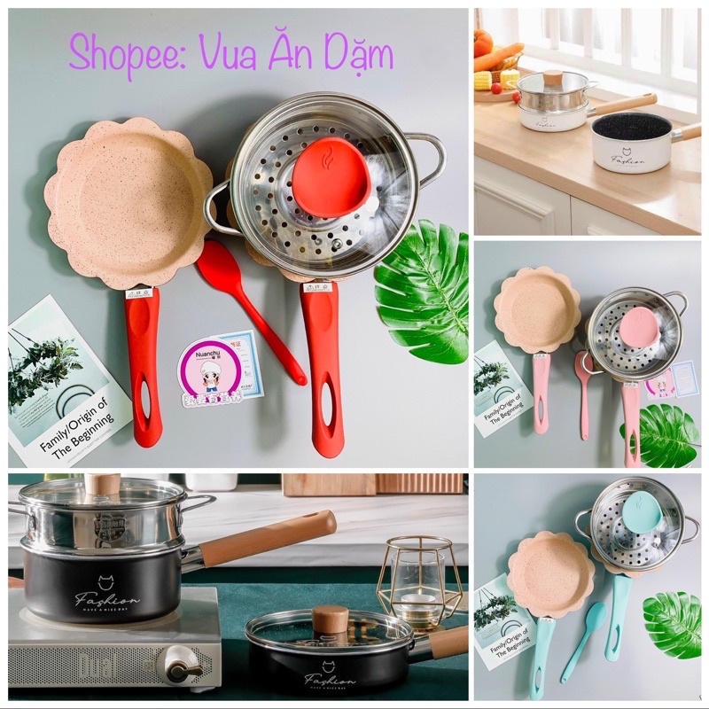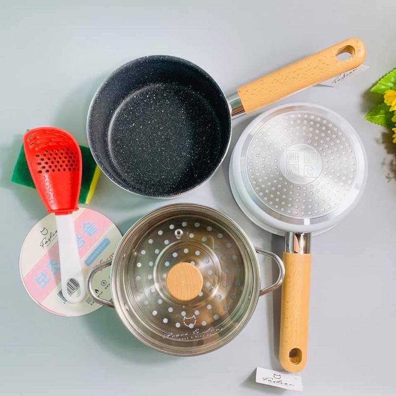 Bộ Nồi Chảo Đá Cao Cấp kèm Xửng Hấp chế biến ăn dặm cho bé