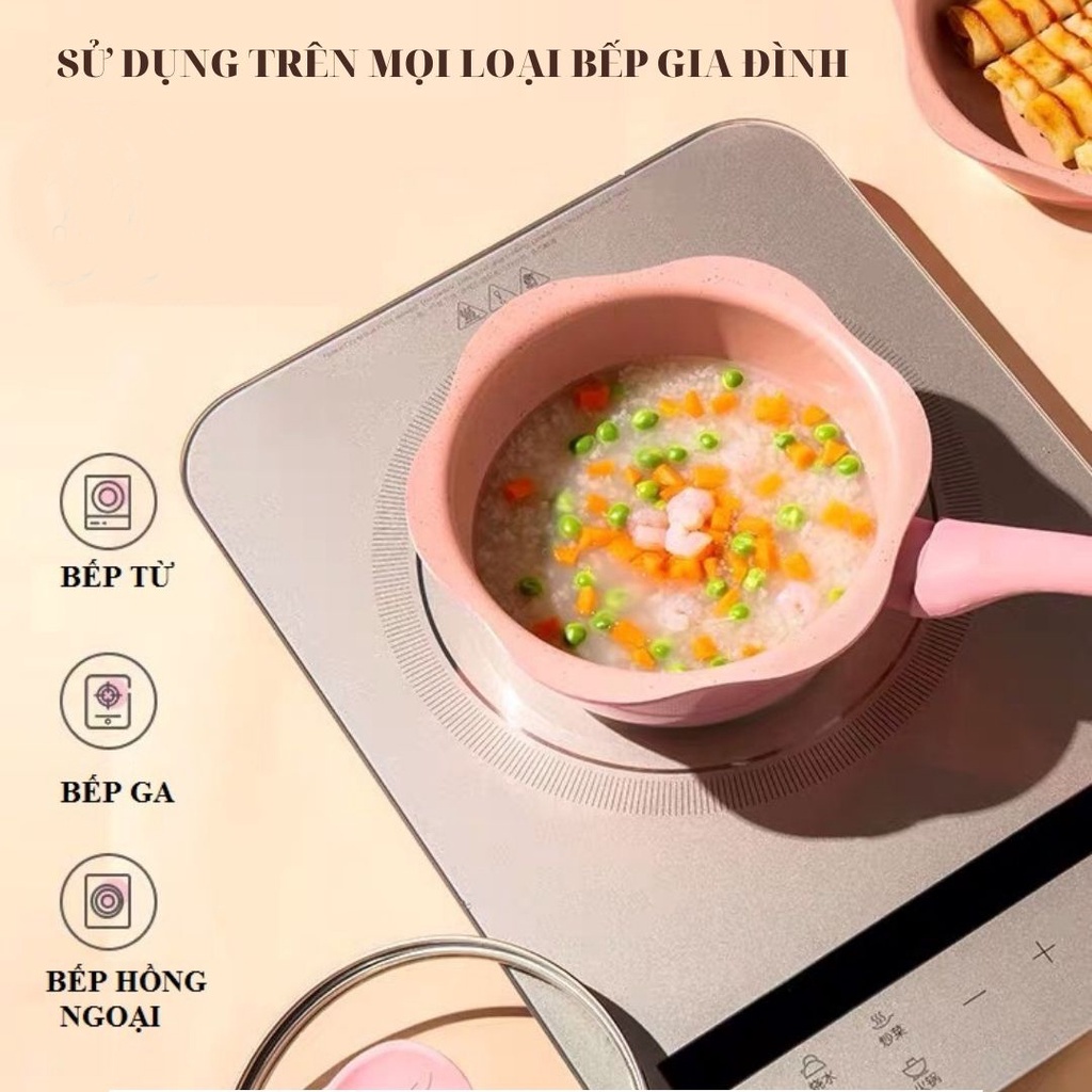 Nồi chảo đá chống dính hình hoa kèm xửng hấp nấu đồ ăn dặm, bộ nồi chảo đa năng nấu đồ ăn dặm cho bé✔️ BỘ NỒI CHẢO CHO BÉ ĂN DẶM HÌNH HOA CAO CẤP, THÀNH NỒI 6 LỚP, TRÁNG MEN ĐÁ CHỐNG DÍNH, KÈM XỬNG HẤP
