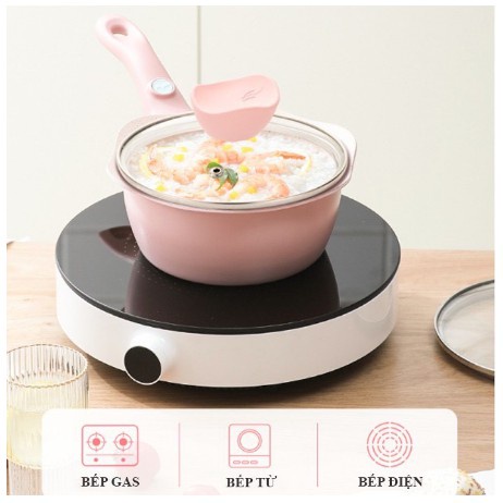 - Nồi và chảo được làm từ hợp kim cao cấp 6 lớp tráng men hoa văn đá chống dính cực tốt, thiết kế hình hoa cực dễ thương màu sắc trang nhã.