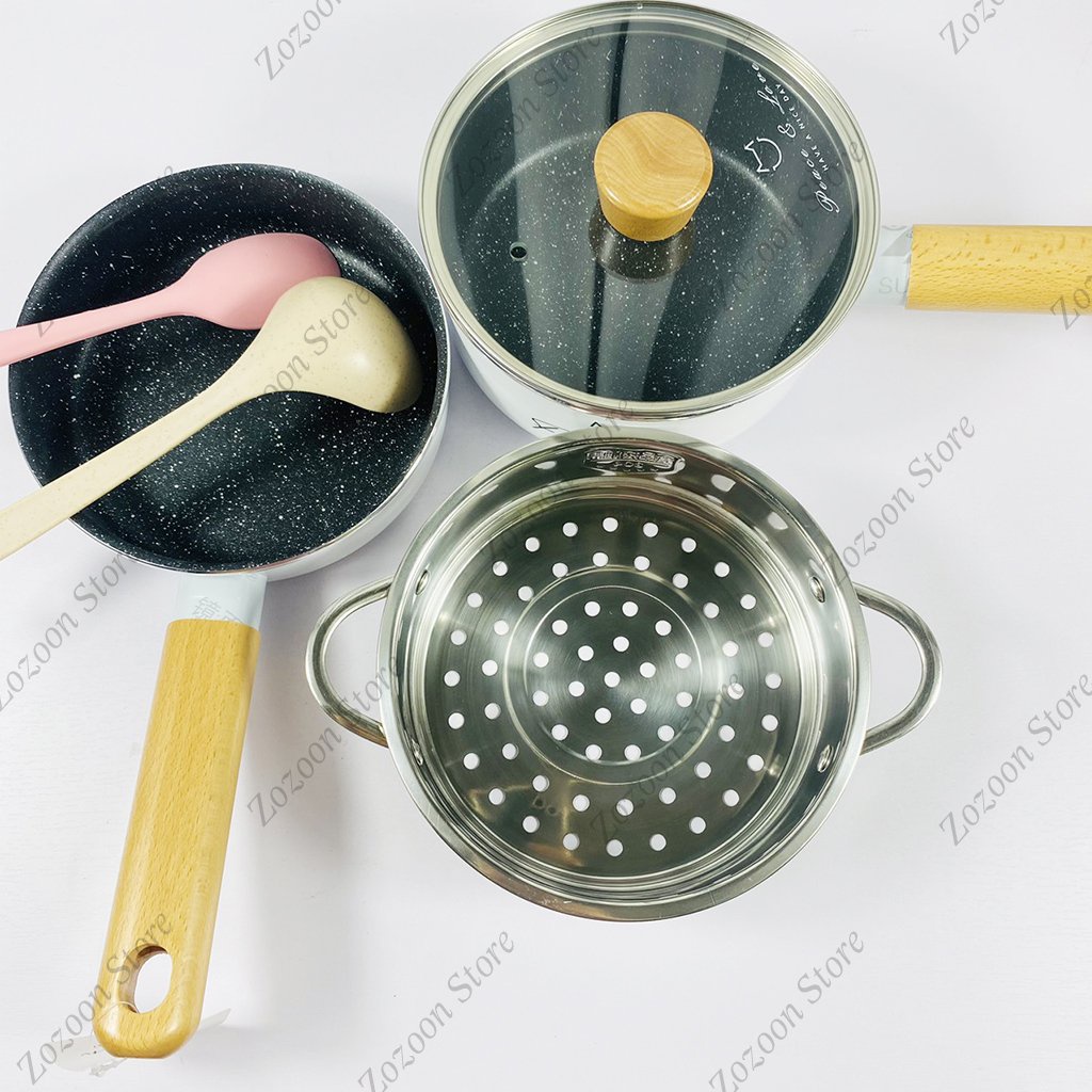 Nhà cửa & Đời sống > Dụng cụ nhà bếp > Nồi || Bộ nồi chảo đá kèm xửng hấp Fashion xuất Hàn size 16cm làm từ hợp kim cao cấp tặng kèm 2 thìa - Zozoon StoreCòn hàng