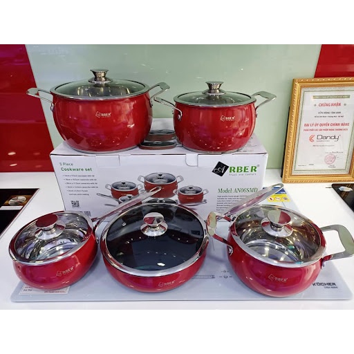 Giới thiệu Bộ Nồi Chảo Đun Từ 5 Món ARBER- AN06SMNB-3 đáy-Cao Câp-Inox 304 sáng bóng,bền,đẹp,chính hãng,giá rẻ