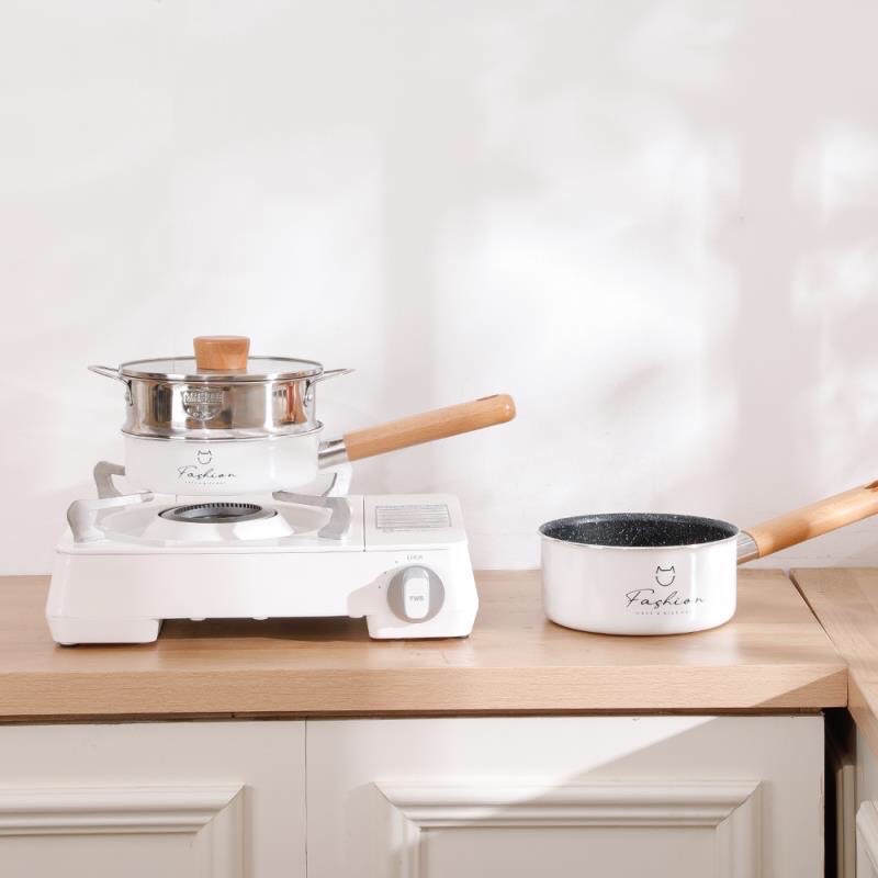 Bộ Nồi Chảo Fashion, Kèm Xửng Hấp inox 16cm Tặng Kèm Thìa Cho Bé Ăn Dặm