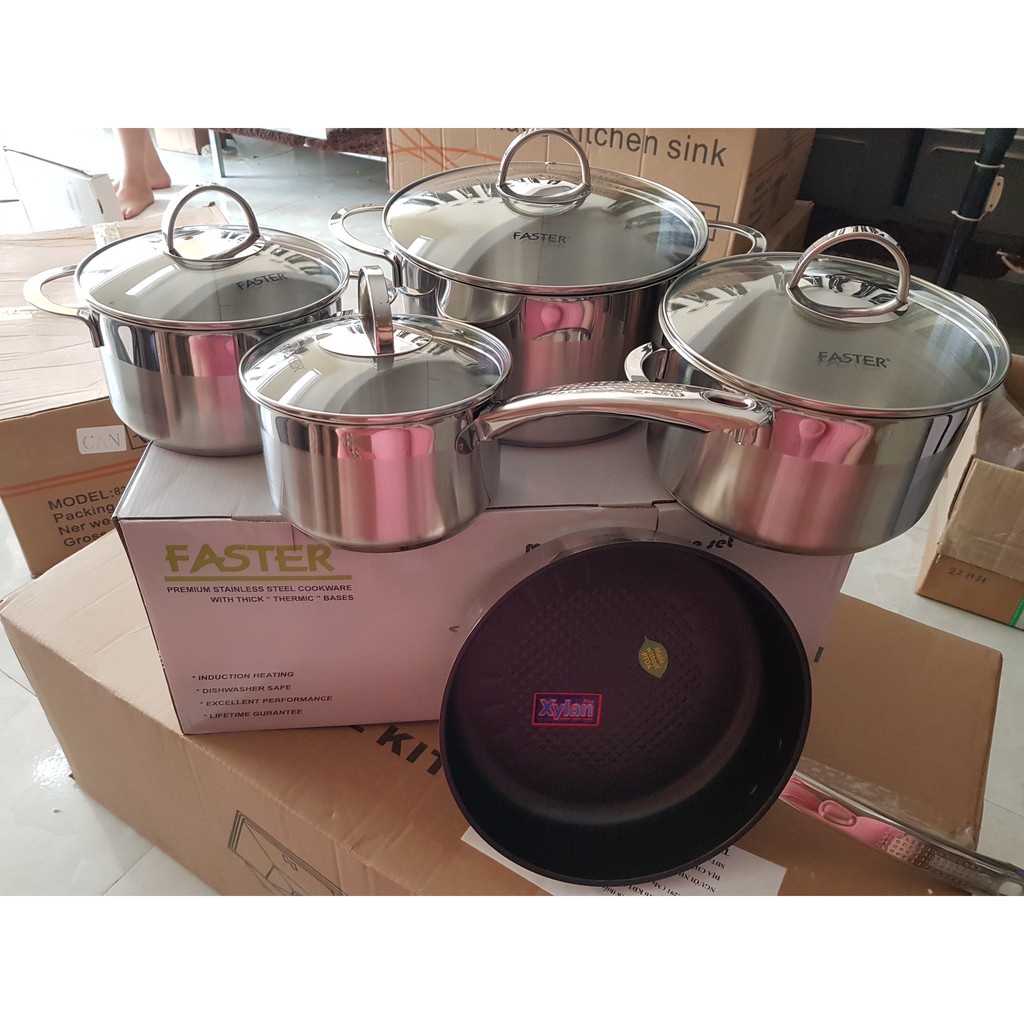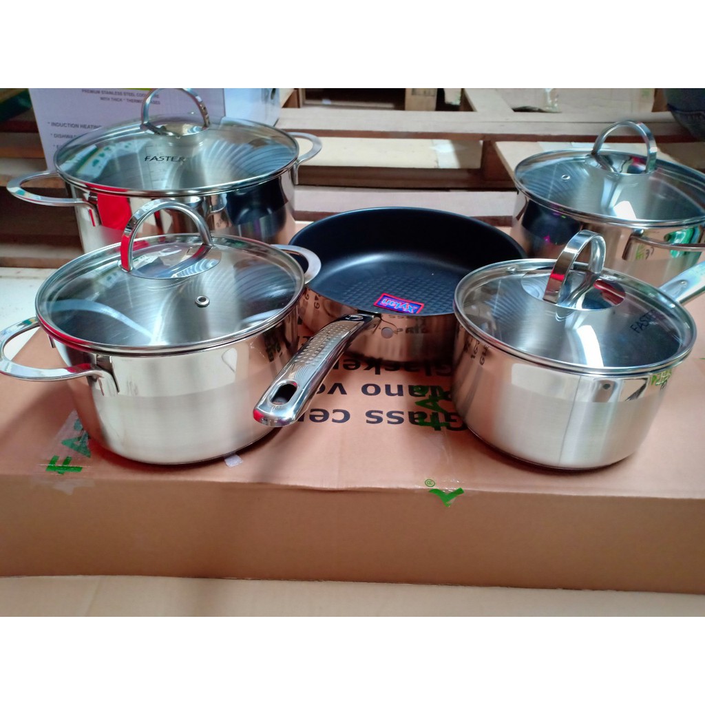 Nhà cửa & Đời sống > Dụng cụ nhà bếp > Nồi || Bộ nồi chảo FASTER Melody (5 món chuyên dụng cho bếp từ, inox 304 cao cấp)Còn hàng