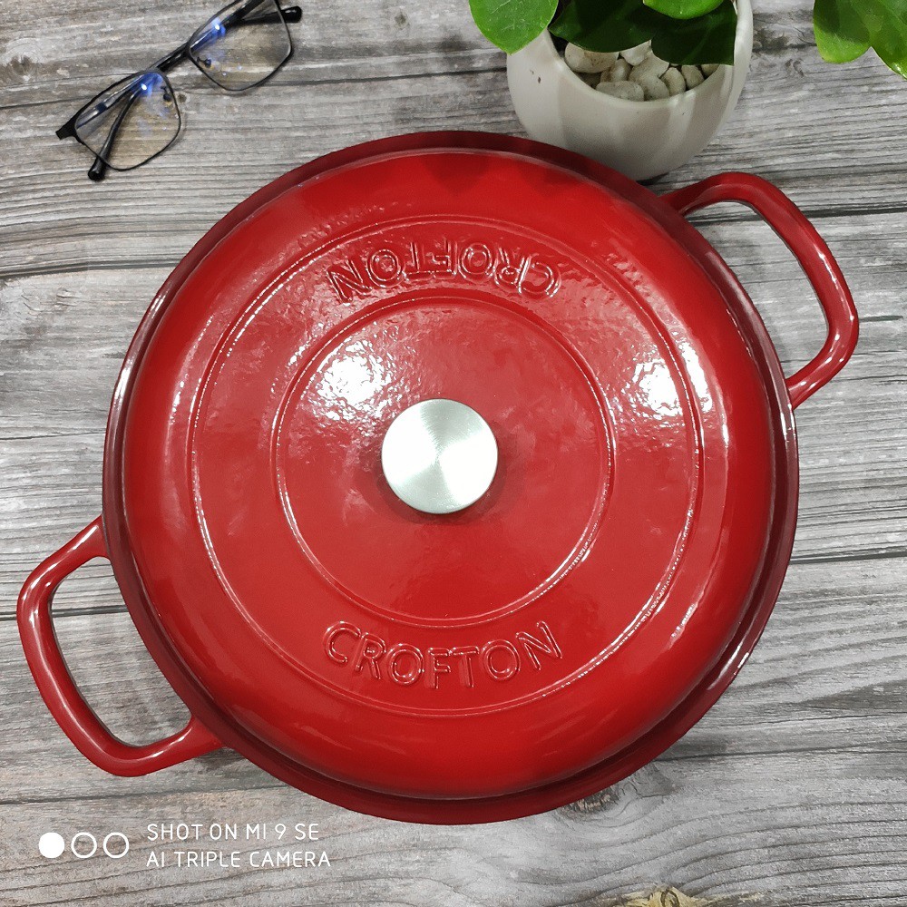 Nồi Chảo Gang Phủ Gốm Tráng Men Cao Cấp CROFTON Aldi Đức Size 30cm 5Quart 4.4 Lít Dutch Oven Dùng Được Bếp Từ
