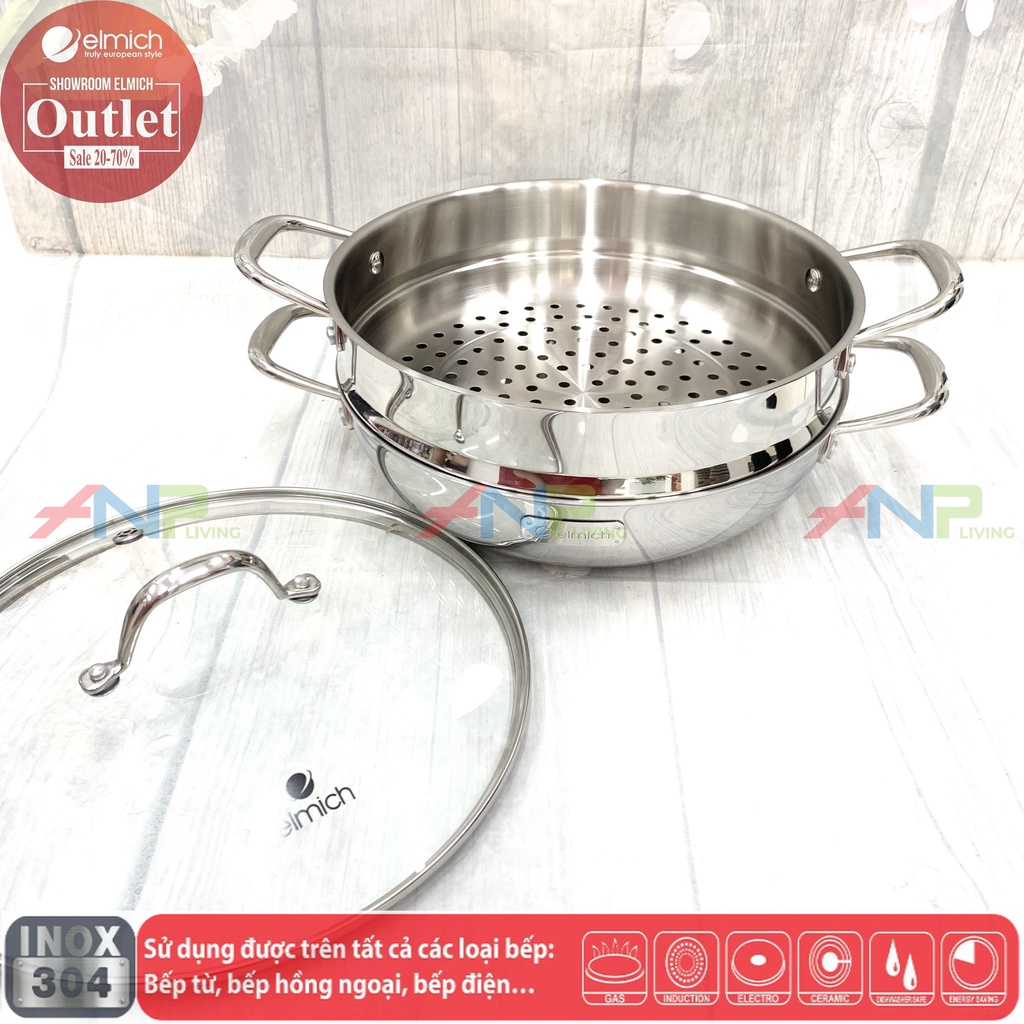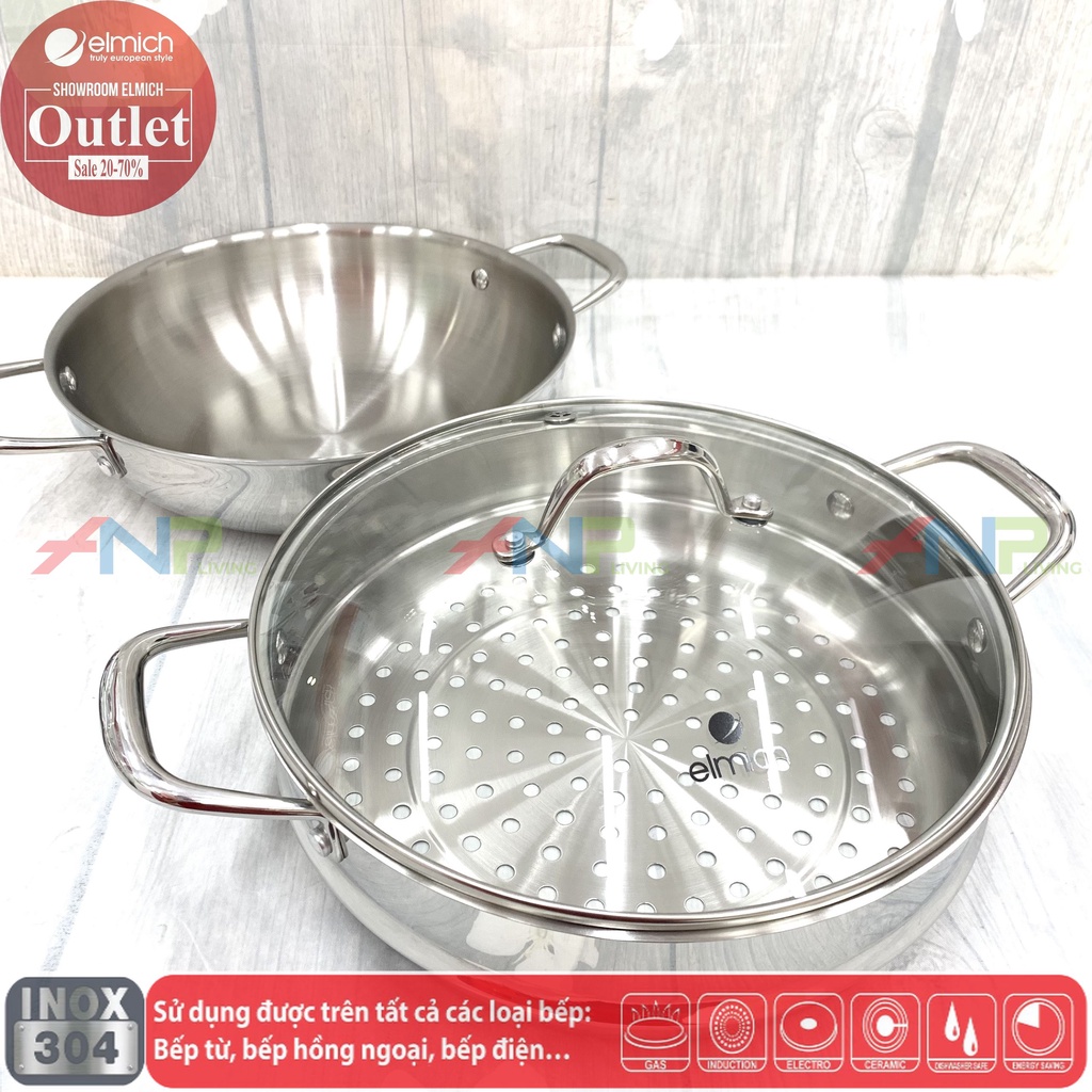 Nồi-Chảo Hấp Đa Năng Inox Liền Đáy Elmich Trimax Czech EL-3832 size 28cm