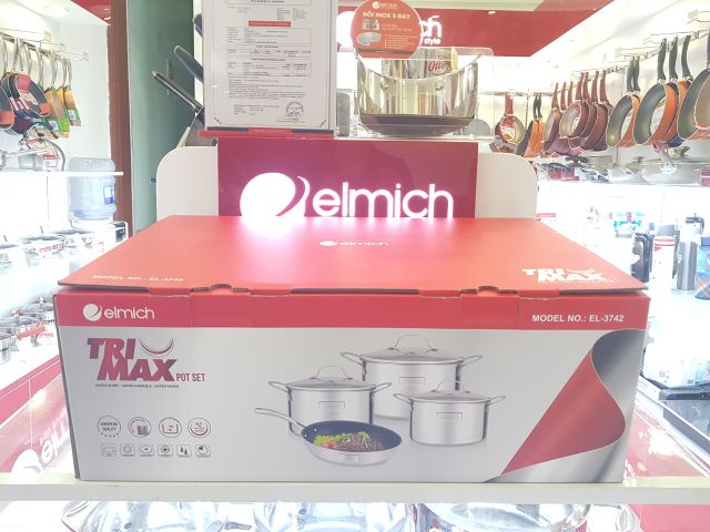 Giới thiệu Bộ nồi chảo inox Elmich 3742 inox 304 trimax đáy liền nguyên khối 18CM, 20CM, 26CM chảo 26CM