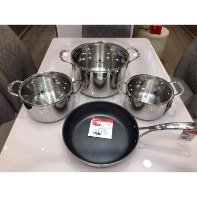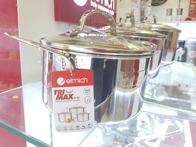 Bộ nồi chảo inox Elmich 3742 inox 304 trimax đáy liền nguyên khối 18CM, 20CM, 26CM chảo 26CM