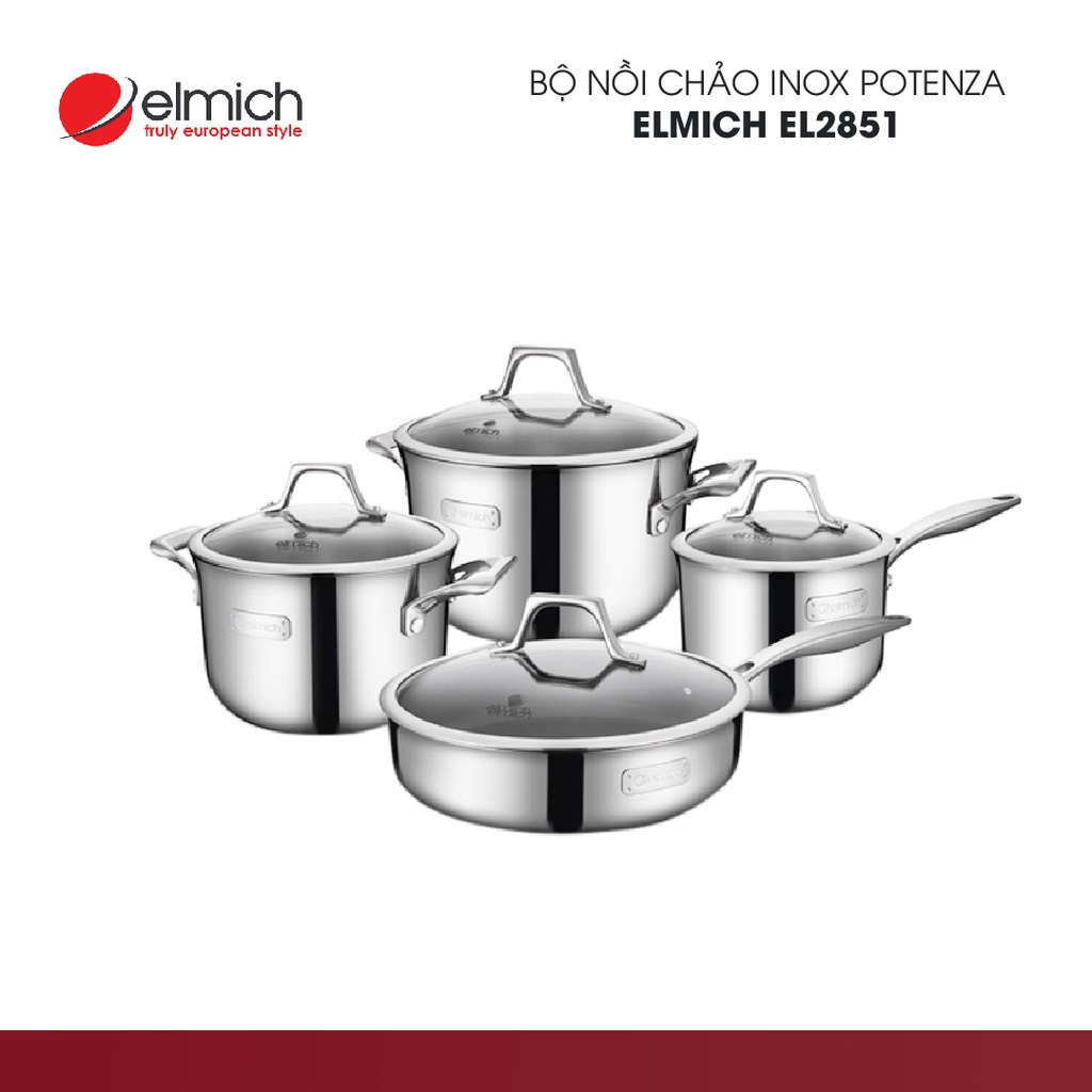 Giới thiệu Bộ nồi chảo inox Elmich Potenza EL2851 | Hàng Chính Hãng | 2352851