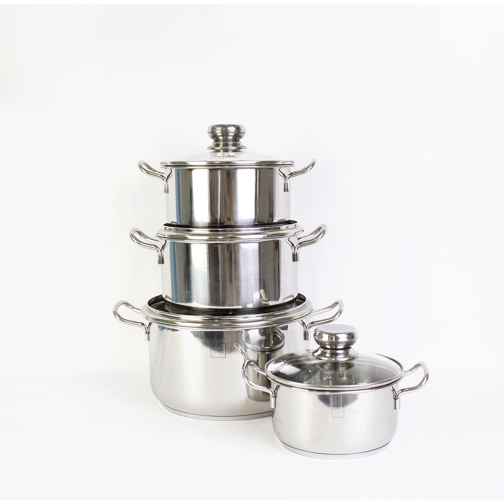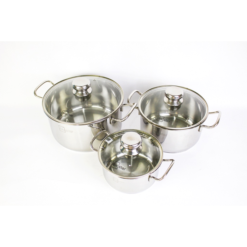#bộnồiinoxBộ nồi chảo i inox Fivestar 5 chiếc nắp kính 3 đáy, dày 0.8mm , dùng được bếp từ, hồng ngoại , gas