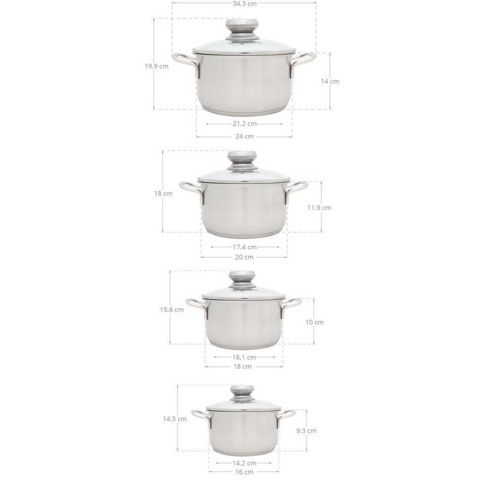 +Bộ nồi có 4 nắp kính cường lực:16cm, 18cm, 20cm, 24cm