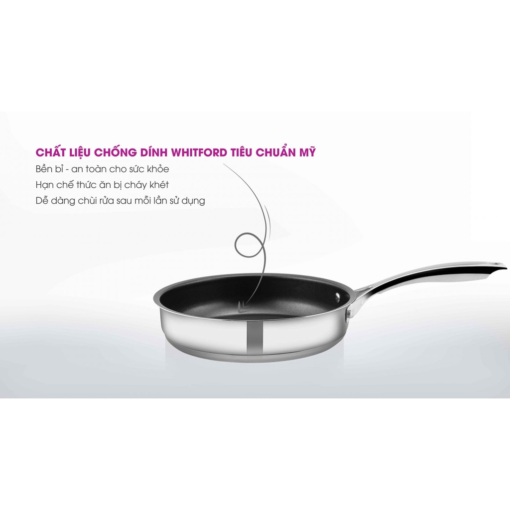 Lòng chảo được phủ chống dính Whitford màu đen ánh kim cho độ bền bỉ tối ưu. Đây là loại chống dính tuyệt đối an toàn cho sức khỏe, không chứa các chất có hại như PFOA, APEO. Chống dính Whitford đạt tiêu chuẩn FDA của Mỹ và được sử dụng trên toàn thế giới.