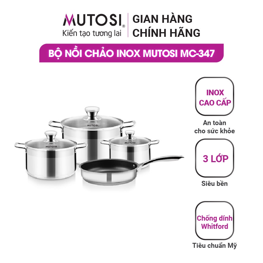 Nhà cửa & Đời sống > Dụng cụ nhà bếp > Nồi || Bộ nồi chảo Inox Mutosi MC-347 dùng được mọi loại bếpCòn hàng