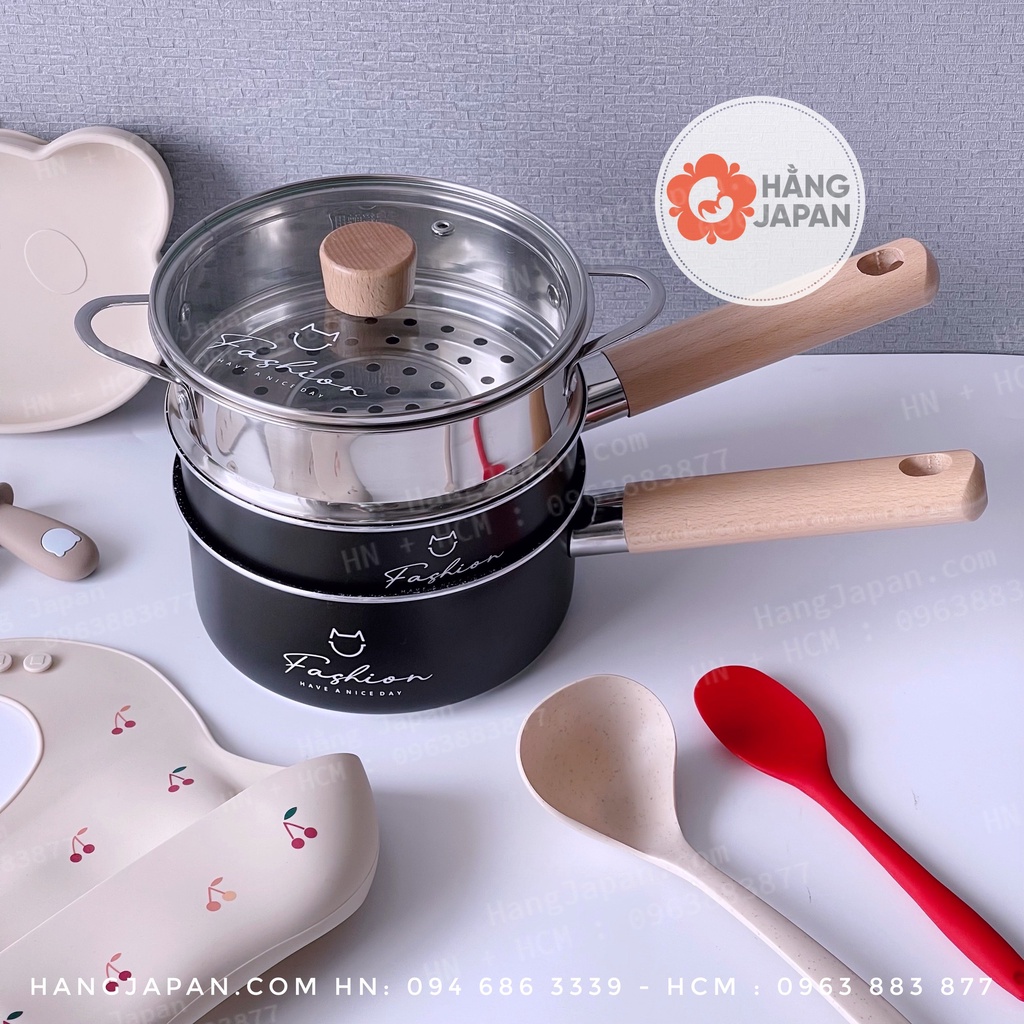 Nhà cửa & Đời sống > Dụng cụ nhà bếp > Nồi || Bộ nồi chảo kèm xửng hấp Fashion cao cấp chống dính, tay cầm gỗCòn hàng