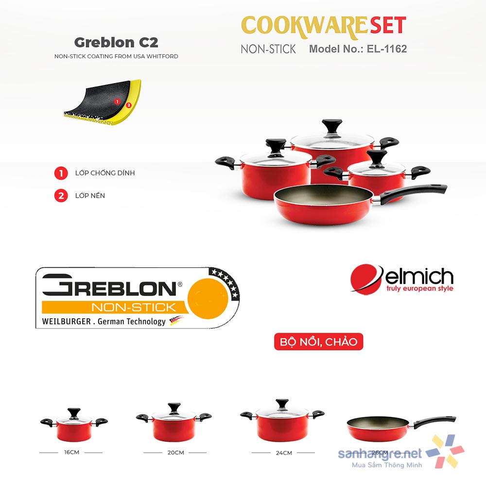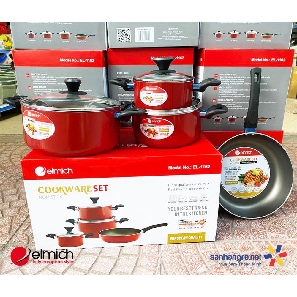 Tên sản phẩm: Bộ nồi chảo nhôm chống dính ElmichModel: El-1162