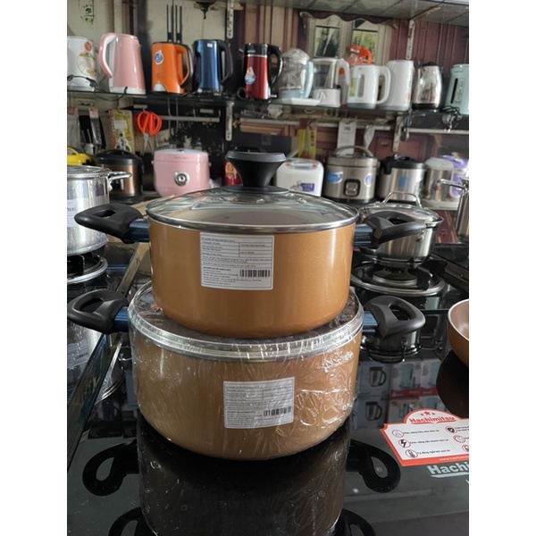 - Chất phủ chống dính màu vàng đồng C2 ánh kim Greblon của Đức, chịu được nhiệt độ lên đến 250°C.