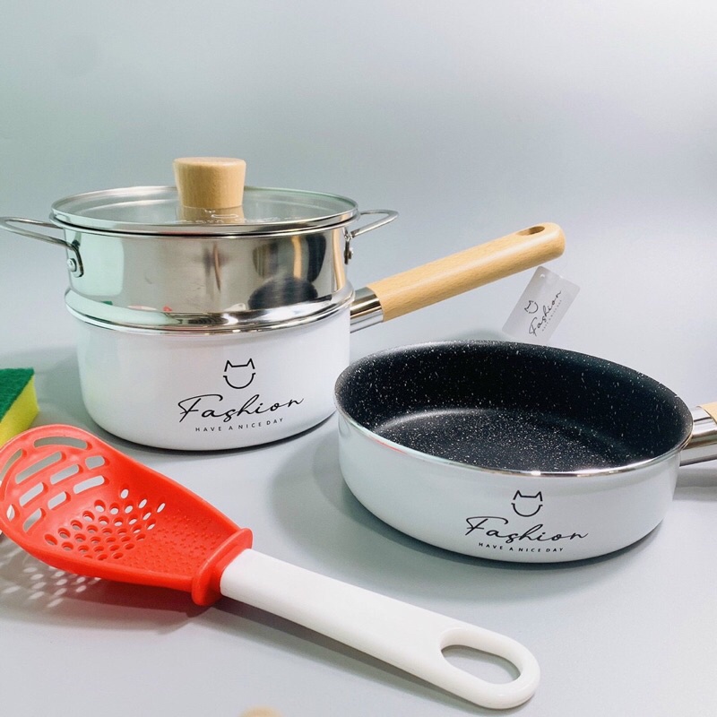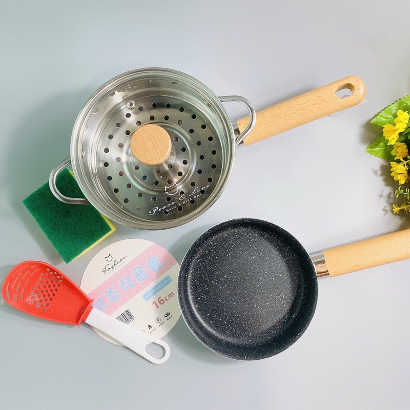 Nhà cửa & Đời sống > Dụng cụ nhà bếp > Nồi || Bộ nồi chảo quáng xửng hấp nấu cháo Fashion xuất hàn cho bé ăn dặm kiểu nhật BLWCòn hàng