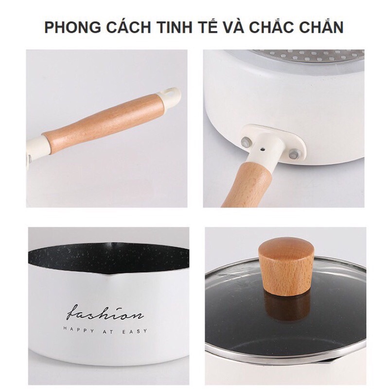 - Nắp thuỷ tinh núm gỗ cách nhiệt, thiết kế xinh xắn. Nồi rất gọn nhẹ và dễ sử dụng
