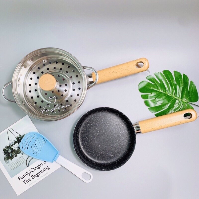 Bộ nồi chảo quánh cháo Fashion kèm xửng cao cấp xuất Hàn cho bé ăn dặm
