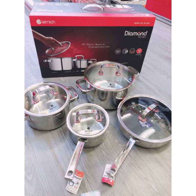 Nhà cửa & Đời sống > Dụng cụ nhà bếp > Nồi || Bộ nồi chảo sang trọng 3 lớp liền đáy Elmich Diamond size 16cm, 20cm, 24cm, 26cm EL3329Còn hàng