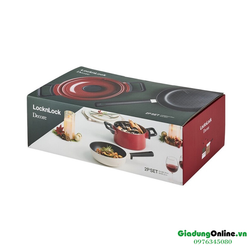 Bộ Nồi Chảo Sâu Lòng 2 Món Decore IH Lock&Lock - LDE1202IHS01 (đáy từ)- Thương hiệu: Chính hãng Lock&Lock - Logo mới của hãng Là LocknLock