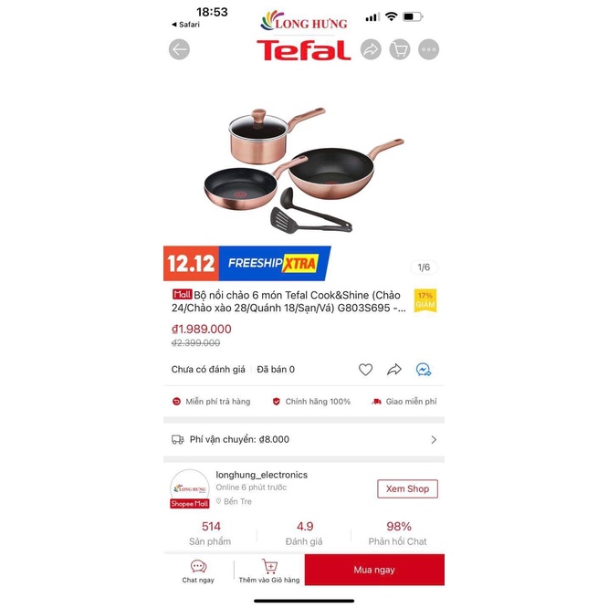 Nhà cửa & Đời sống > Dụng cụ nhà bếp > Nồi || Bộ nồi chảo Tefal Cook&Shine 6pcs G803S695- HÀNG CHÍNH HÃNGCòn hàng