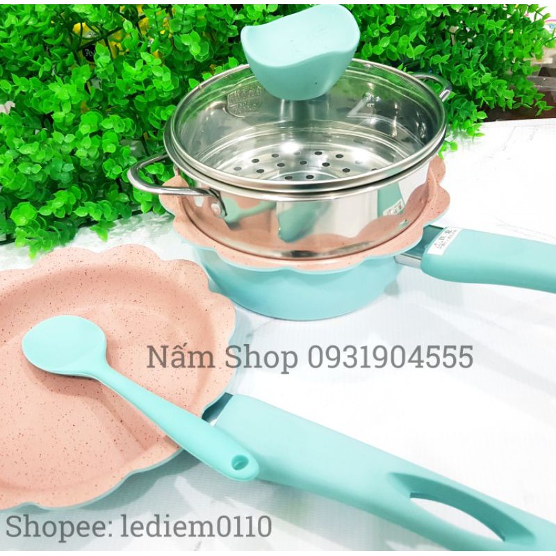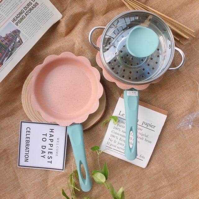 Nhà cửa & Đời sống > Dụng cụ nhà bếp > Nồi || Bộ nồi, chảo, xửng hấp men đá hình hoa cao cấp Sakura chế biến ăn dặm cho béCòn hàng