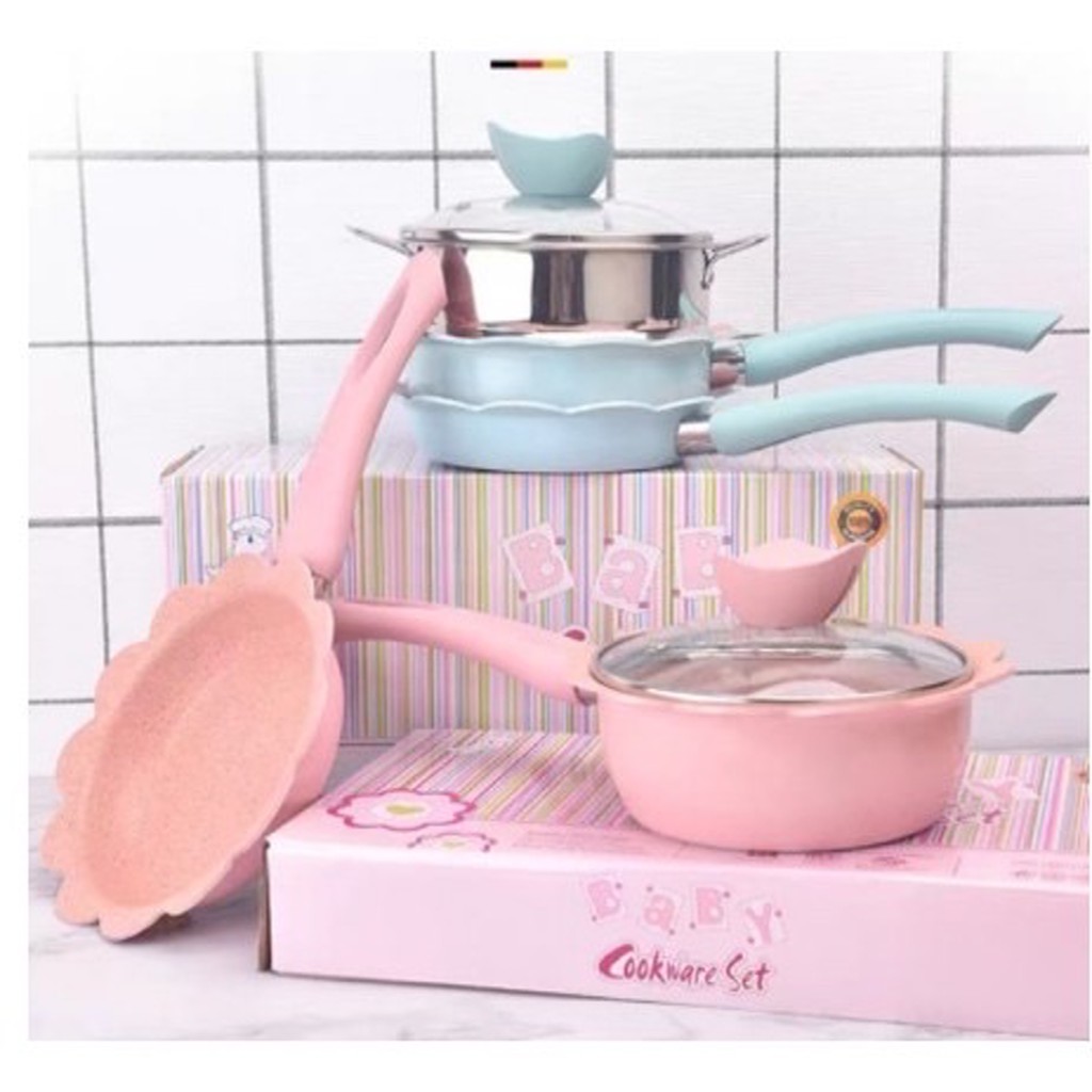 Nhà cửa & Đời sống > Dụng cụ nhà bếp > Nồi || Bộ nồi, chảo, xửng hấp men đá hình hoa cao cấp Sakura chế biến ăn dặm cho béCòn hàng