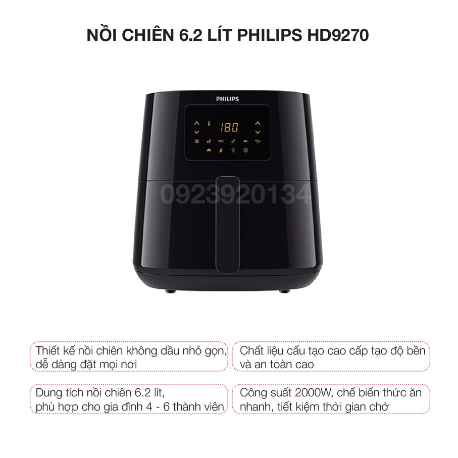 Thiết Bị Điện Gia Dụng > Đồ gia dụng nhà bếp > Nồi chiên không dầu || Nồi chiên 6.2 lít Philips HD9270Còn hàng
