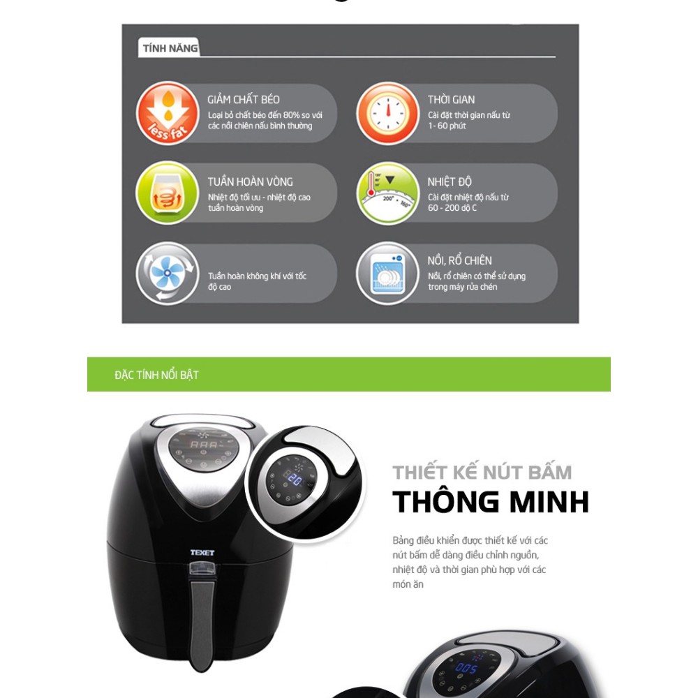 Thiết Bị Điện Gia Dụng > Đồ gia dụng nhà bếp > Nồi chiên không dầu || Nồi chiên chân không và không dầu TEXET AF-612 (Đen)Còn hàng