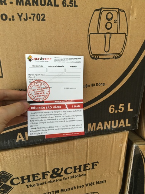 Nồi chiên chef&chef 6,5L, THẺ BẢO HÀNH 12 THÁNG