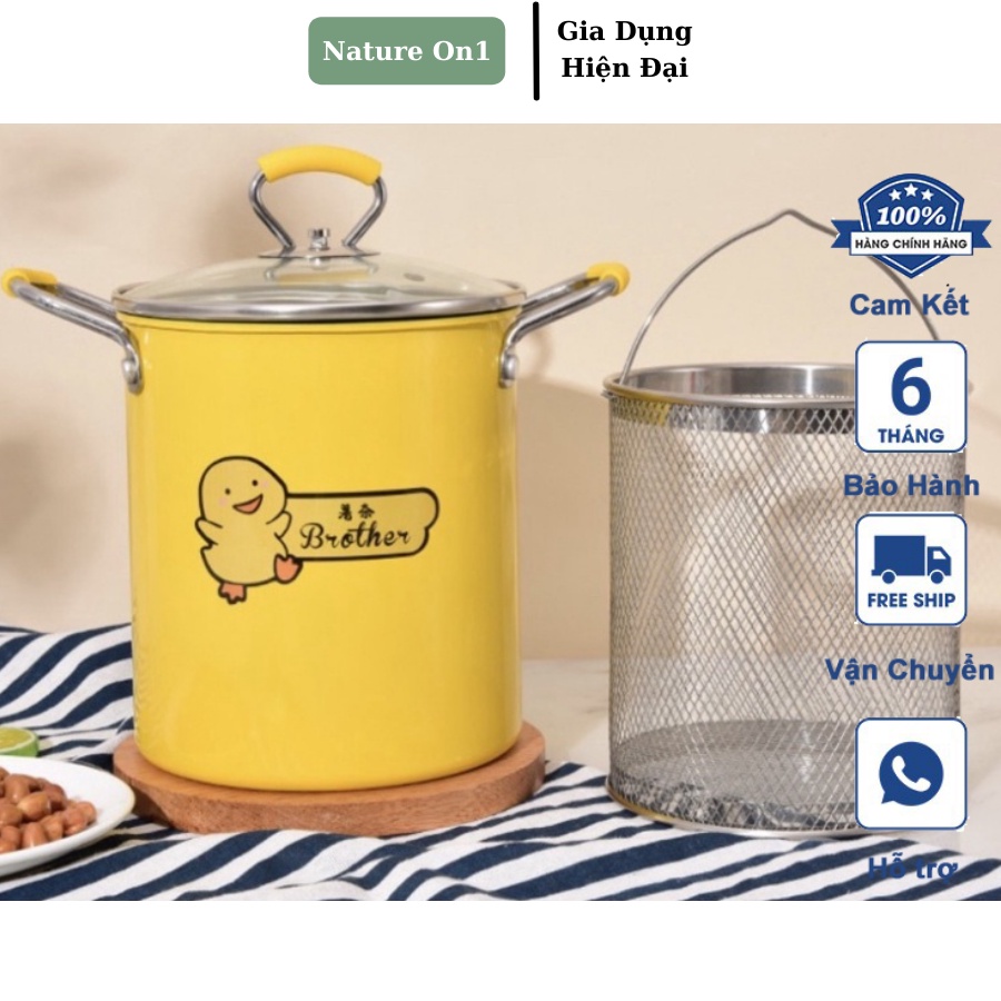 Nồi chiên dầu,kèm lồng inox chống dính 18cm hình trụ dùng mọi loại bếp hàng hót 2021