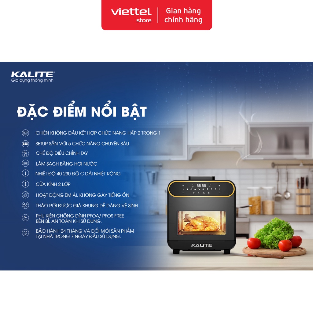 Thiết Bị Điện Gia Dụng > Đồ gia dụng nhà bếp > Nồi chiên không dầu || Nồi chiên hơi nước Kalite STEAMPRO 15 Lit Chính hãngCòn hàng