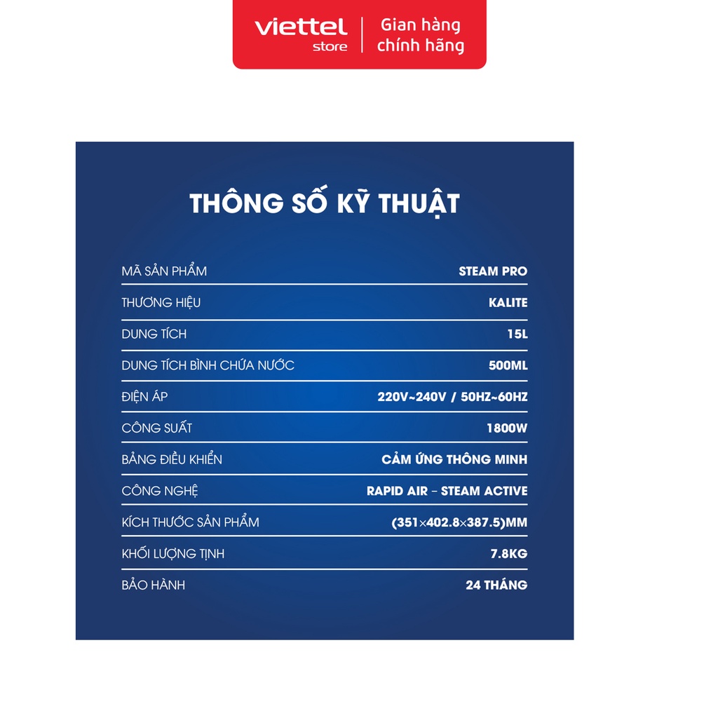 Giới thiệu [Mã ELHADEV giảm 4% đơn 300K] Nồi chiên hơi nước Kalite STEAMPRO 15 Lit Chính hãng