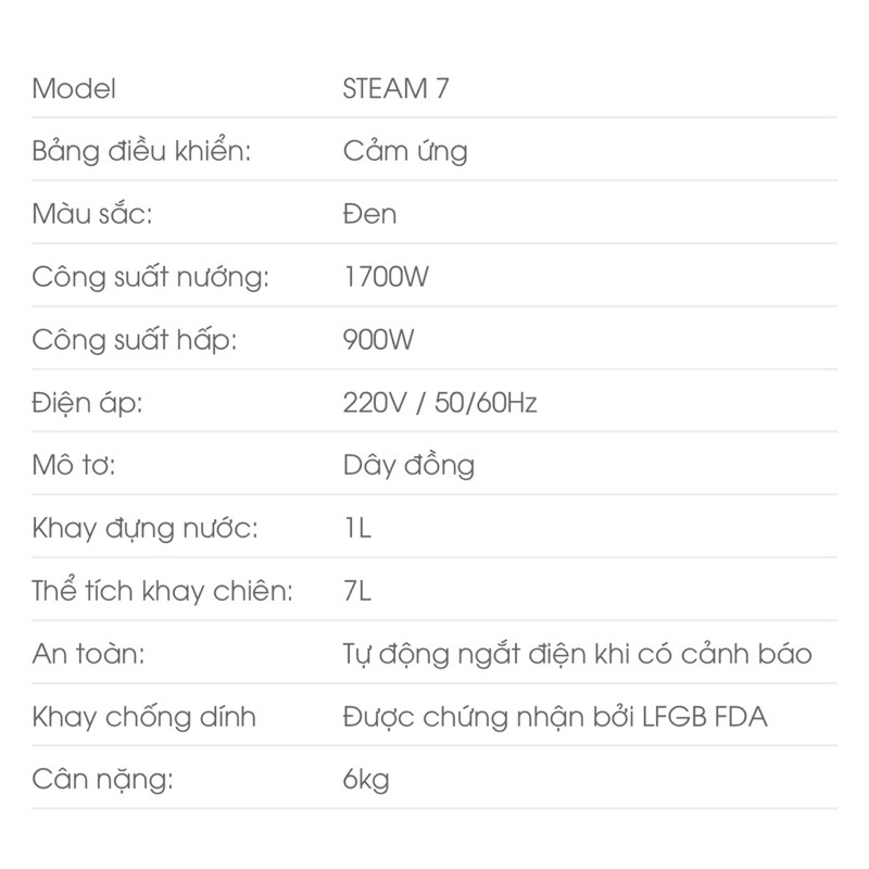 - Dung tích lớn 7L, thoải mái chế biến đồ ăn cho gia đình đông người
