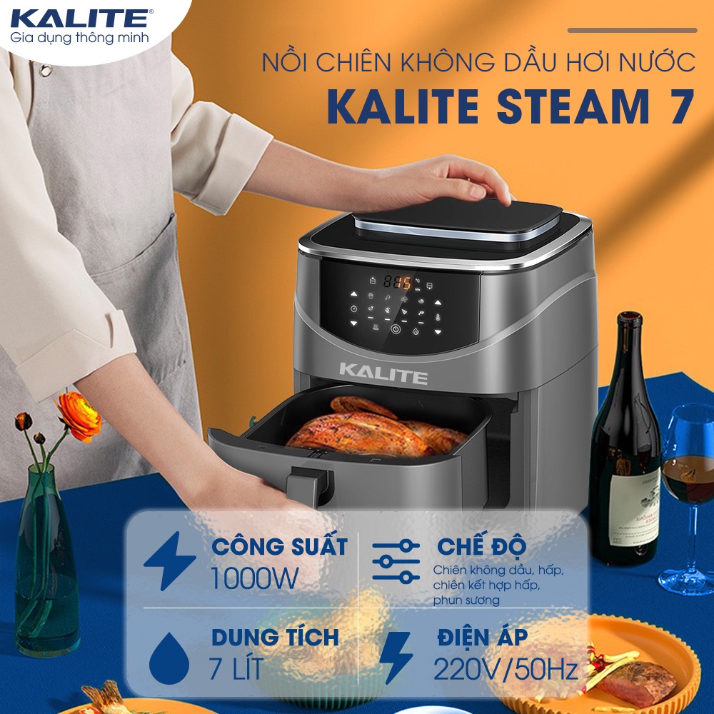 Thiết Bị Điện Gia Dụng > Đồ gia dụng nhà bếp > Nồi chiên không dầu || Nồi chiên hơi nước Kalite Steam 7, chiên hấp 2 in 1, dung tích 7L, 1700W đa năng [BẢO HÀNH 24 THÁNG]Còn hàng