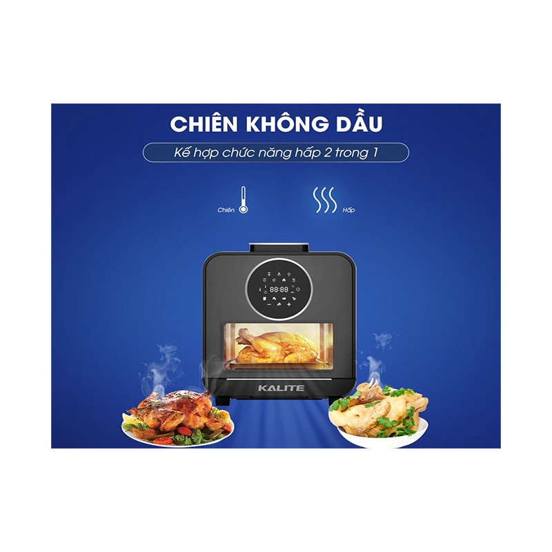 Nồi chiên hấp Kalite Steam Star là dòng sản phẩm kết hợp 2 chức năng trong 1 - Hơi nước và nhiệt độ đối lưu 360 độ cho thực phẩm giòn tan bên ngoài mềm ẩm mọng nước bên trong.