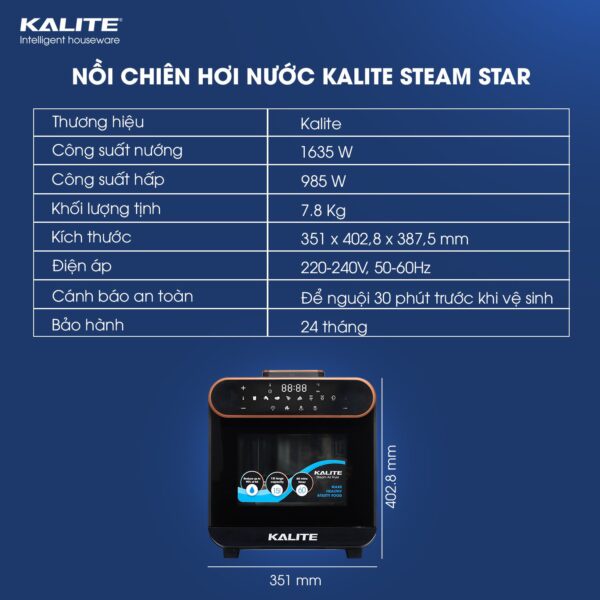 Thiết Bị Điện Gia Dụng > Đồ gia dụng nhà bếp > Nồi chiên không dầu || Nồi chiên hơi nước Kalite Steam Star, dung tích 15L, hấp chiên 2in1, điều khiển điện tử đa năng [BẢO HÀNH 24 THÁNG]Còn hàng