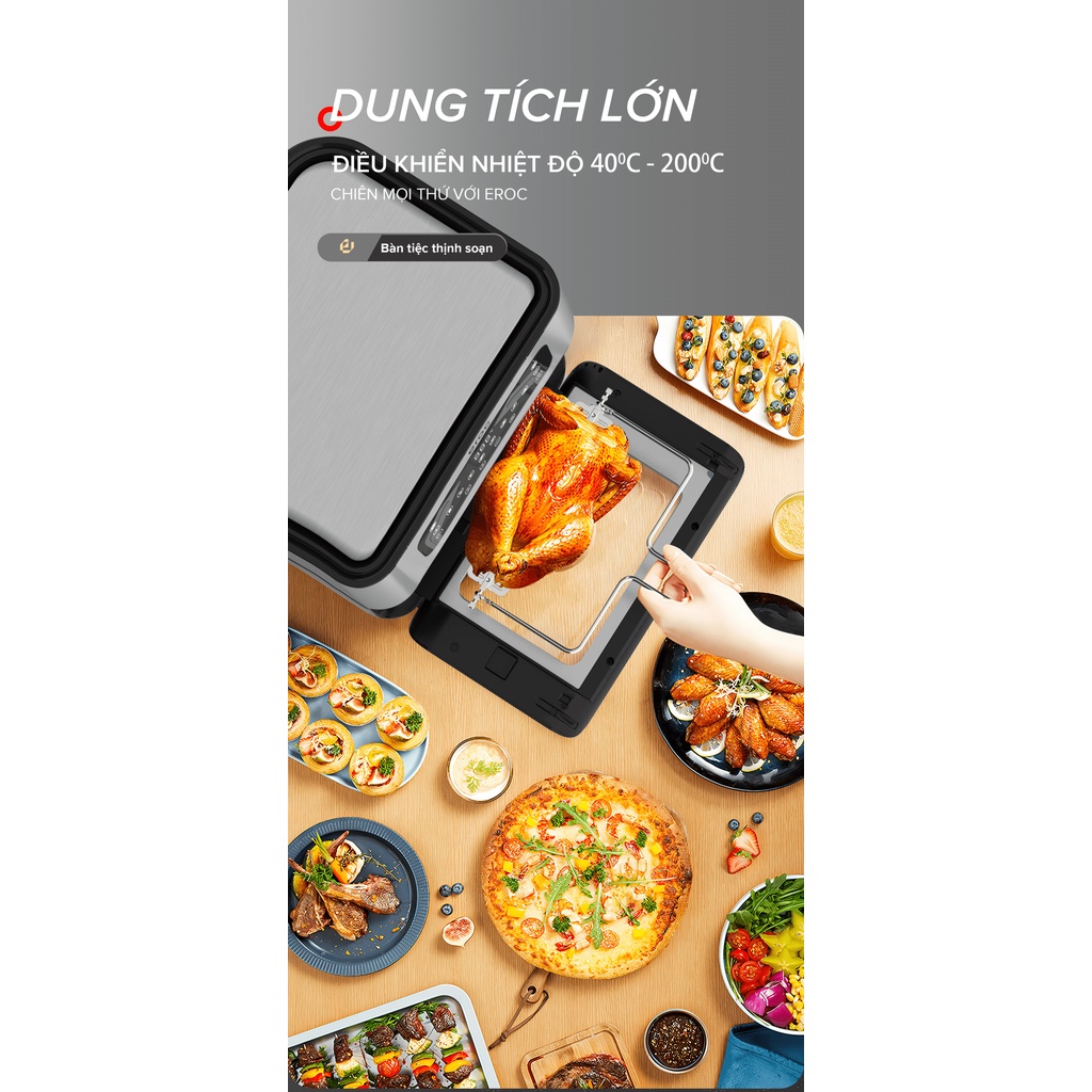 Nồi Chiên Không Dầu Kèm Chức Năng Nướng 10 Lít, Nút Bấm Cảm Ứng, Cửa Tháo Rời, Full Phụ Kiện Eroc V-Z1 Bảo Hành 12 Tháng