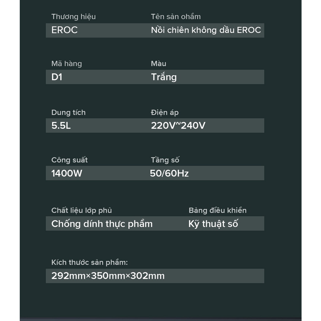 Giới thiệu [Mã ELHADEV giảm 4% đơn 300K] Nồi Chiên Không Dầu [1 Đổi 1] Eroc V-D1 Chống Dính 5.5L [Màn Hình Cảm Ứng] Bảo Hành 1 Năm