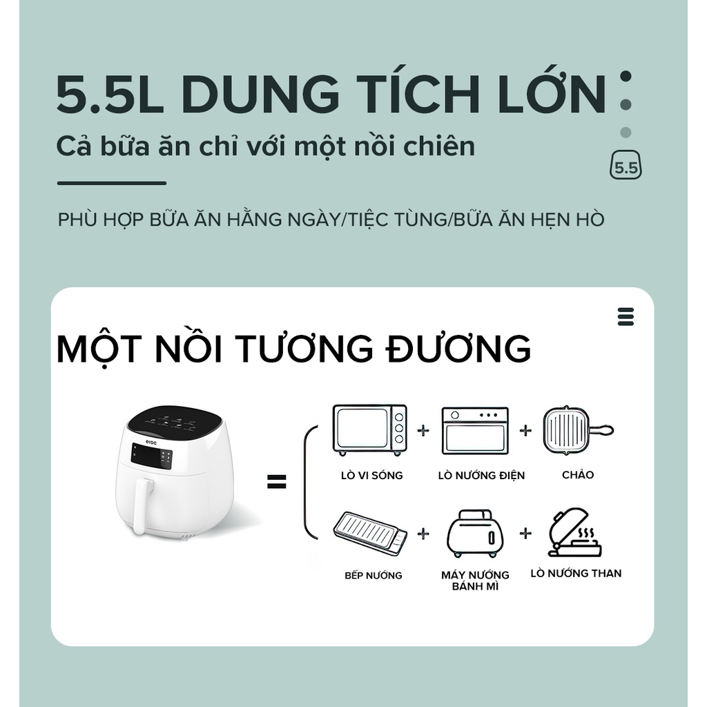 [Mã ELHADEV giảm 4% đơn 300K] Nồi Chiên Không Dầu [1 Đổi 1] Eroc V-D1 Chống Dính 5.5L [Màn Hình Cảm Ứng] Bảo Hành 1 Năm