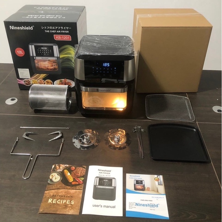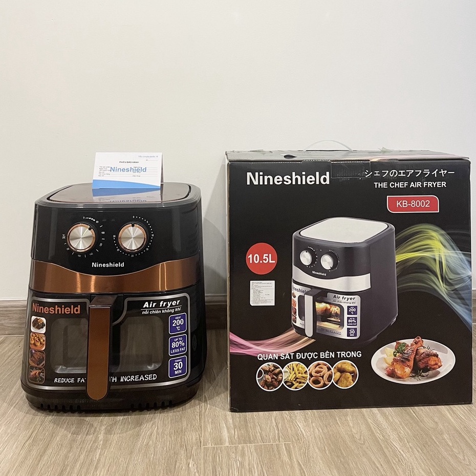 Thiết Bị Điện Gia Dụng > Đồ gia dụng nhà bếp > Nồi chiên không dầu || NỒI CHIÊN KHÔNG DẦU 10.5 LÍT CÓ KÍNH VÀ 10LÍT NINESHIELD KB-M CÔNG SUẤT 1500W {TẶNG CHỔI QUÉT DẦU}Còn hàng