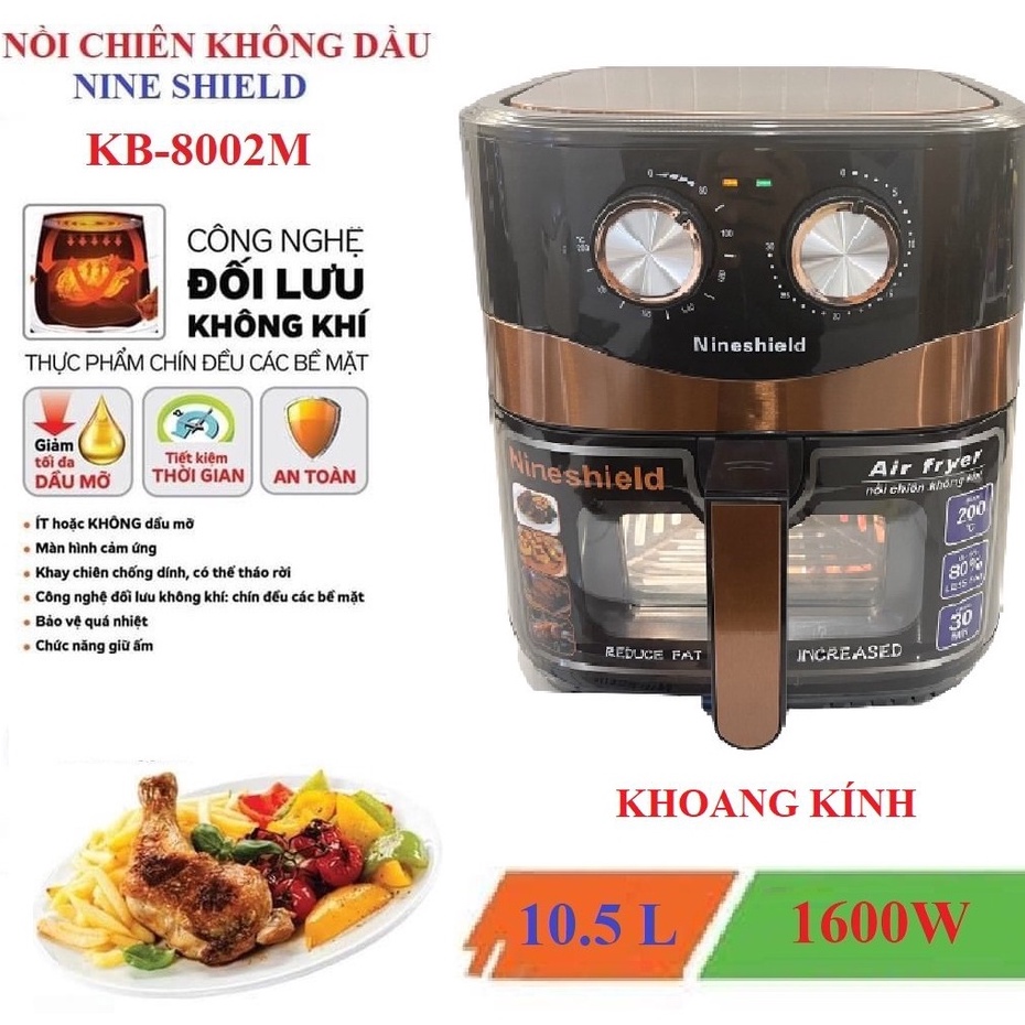 NỒI CHIÊN KHÔNG DẦU 10.5 LÍT CÓ KÍNH VÀ 10LÍT NINESHIELD KB-M CÔNG SUẤT 1500W {TẶNG CHỔI QUÉT DẦU}
