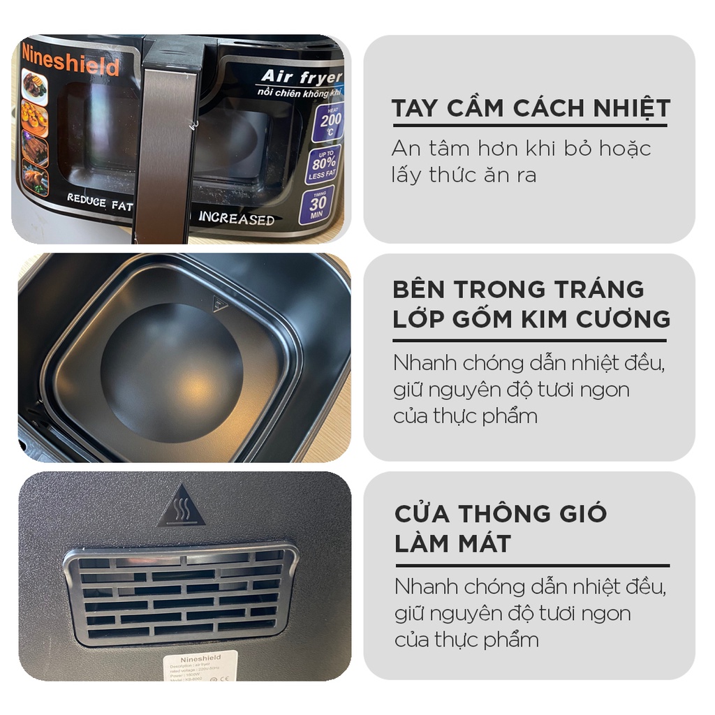 Nếu đang có nhu cầu mua Nồi chiên không dầu NINESHIELD KB8002M hãy đến với gian hàng Nineshield chính hãng để:
