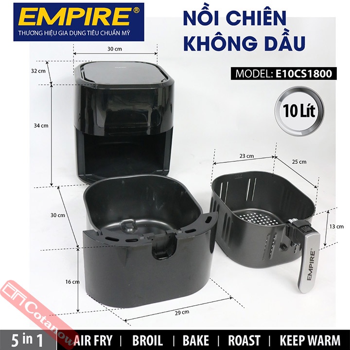 Thiết Bị Điện Gia Dụng > Đồ gia dụng nhà bếp > Nồi chiên không dầu || Nồi Chiên Không Dầu 10 Lít Empire E10CS1800 1800W, Bảo Hành 12 Tháng, Cảm Ứng LCD, 8 Chương Trình Cài Đặt - COTANOWCòn hàng